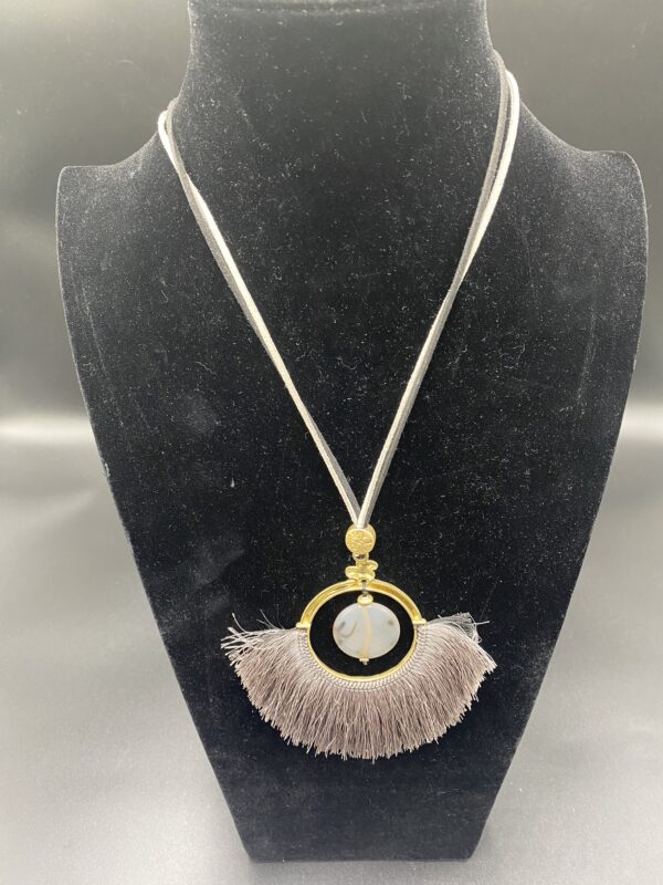 Κολιέ φο με κρεμαστό στοιχείο απο φούντα και χρυσό σχέδιο.